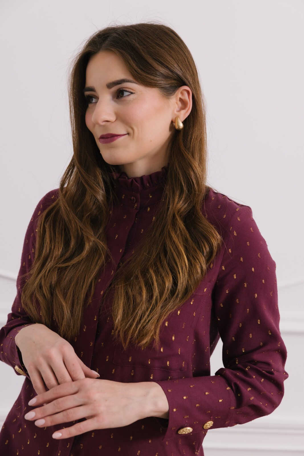 - subtelne złote akcenty idealnie kontrastujące z głębokim bordowym kolorem,