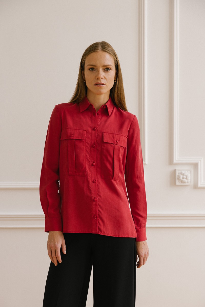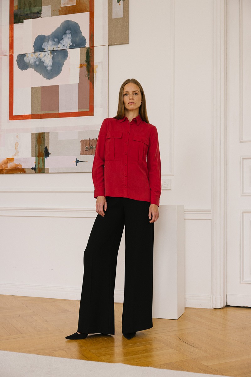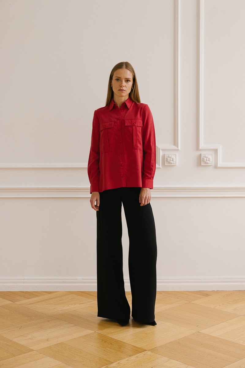 The power red to koszula, która wymaga pewności siebie. Zakładasz ją wtedy, gdy chcesz przemówić swoją stylizacją.