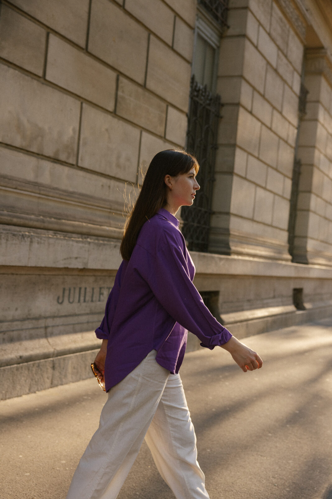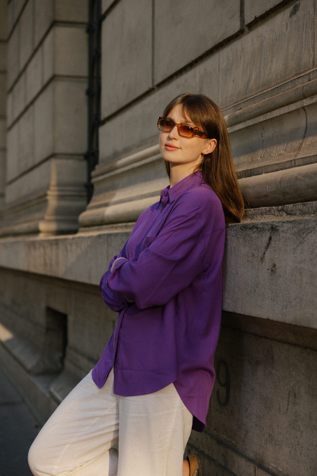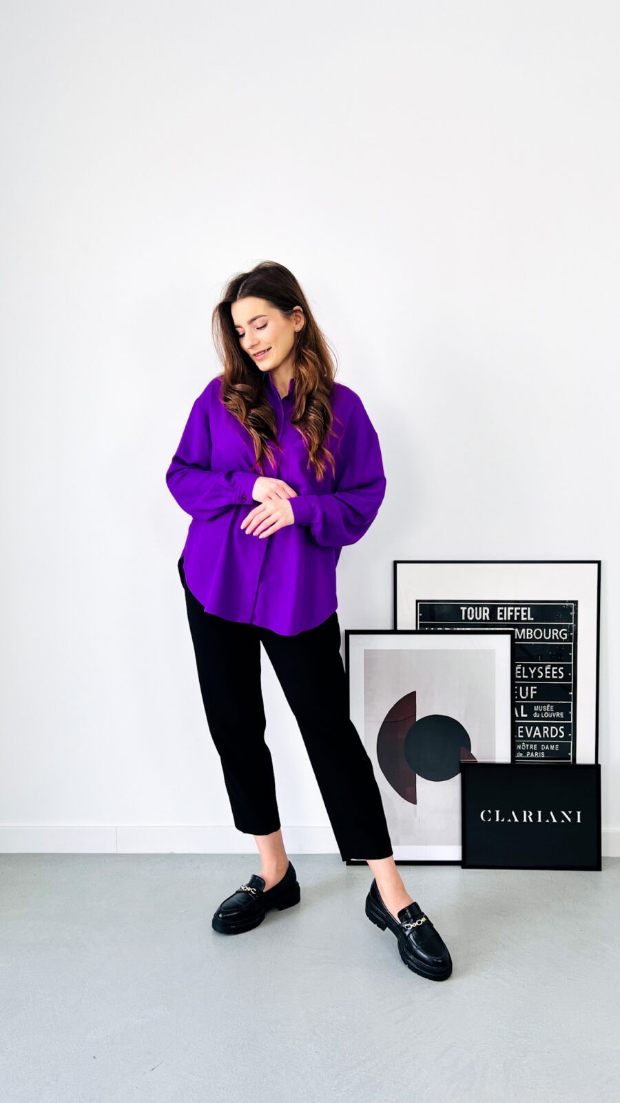 Co posiada fioletowa, oversizowa koszula clari 0.7., czego nie zaoferują Ci podobne koszule w innych sklepach? Idealnie dopasowujący się krój do Twojej sylwetki.  W tym modelu z każdym ruchem poczujesz delikatność i brak skrępowania. Swoboda i luz zamknięte w elegancji koszuli – dokładnie z taką myślą powstał ten model.